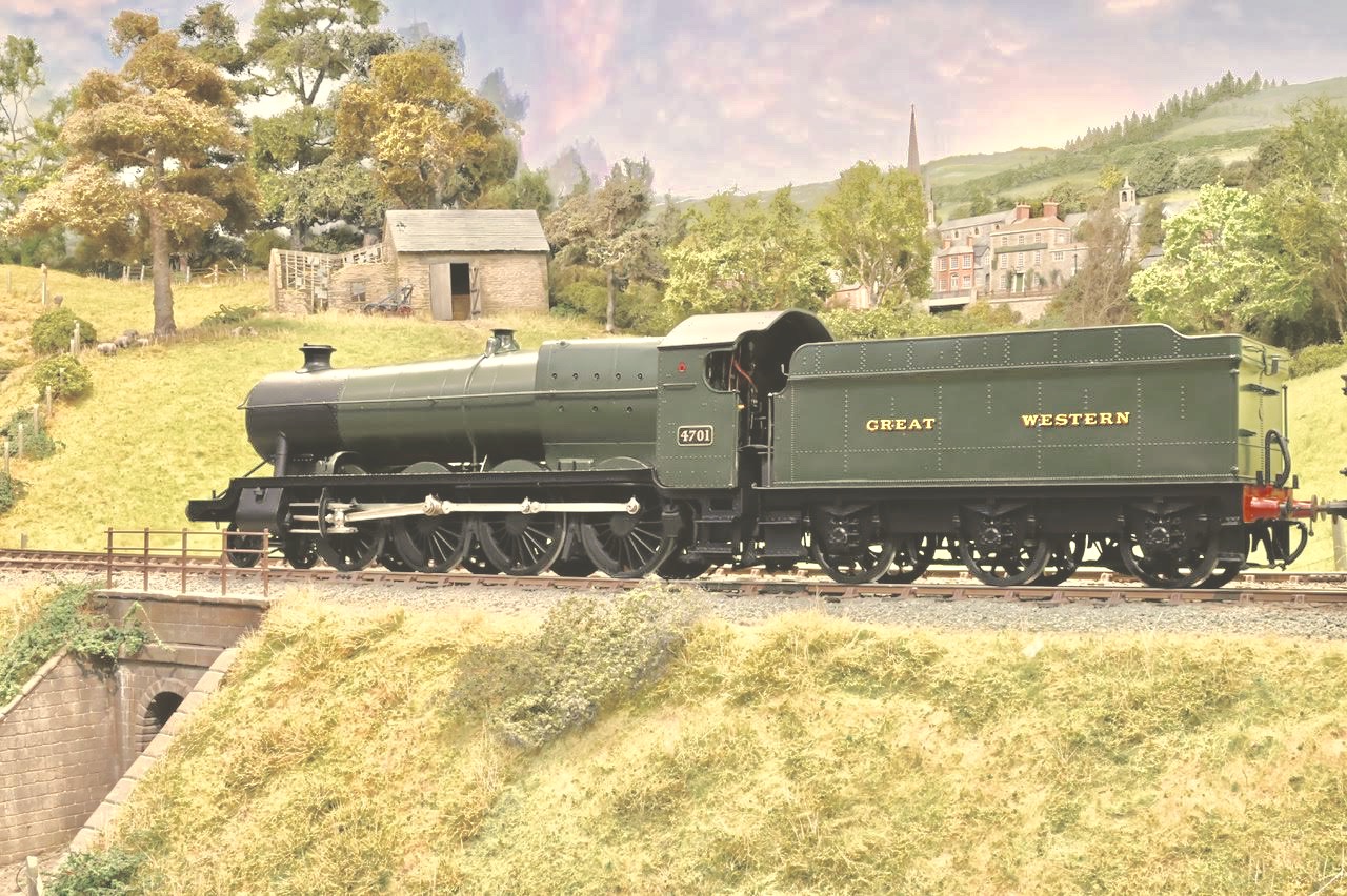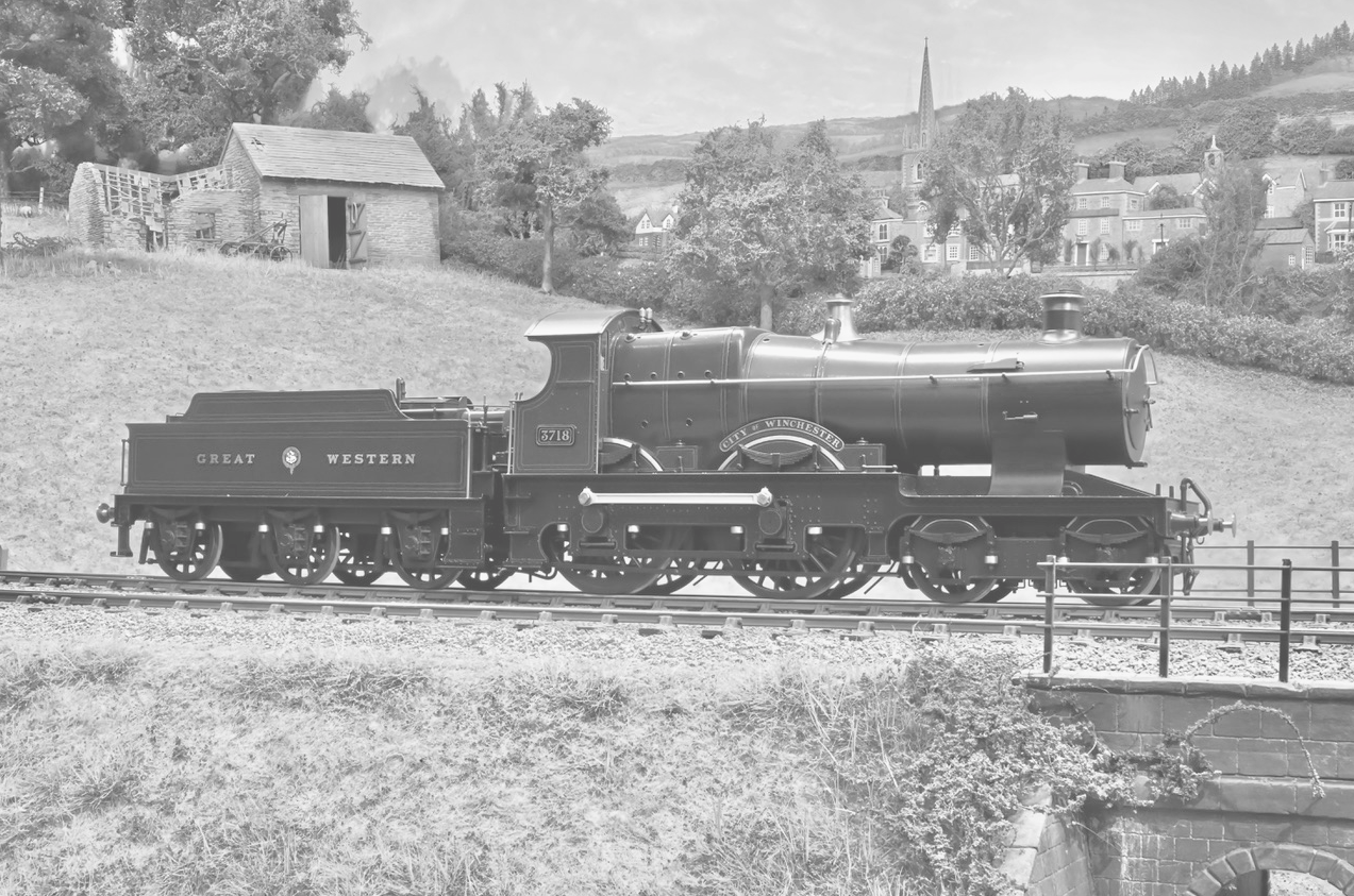 Churchward GWR 3700 “City” Class 4-4-0 locomotive, No 3718 “City of Winchester” was originally built in 1903 at Swindon Works as No 3441 and was later renumbered to 3718 in 1912. These were known for high performance in passenger service, featuring inside cylinders and a reputation for speed. The class included the more famous “City of Truro” (claimed as one of the first to reach 100 mph in 1904). No. 3718 itself had a service life of just over 24 years, and the model is seen passing Ewyas Harold running light. David Thomas.
