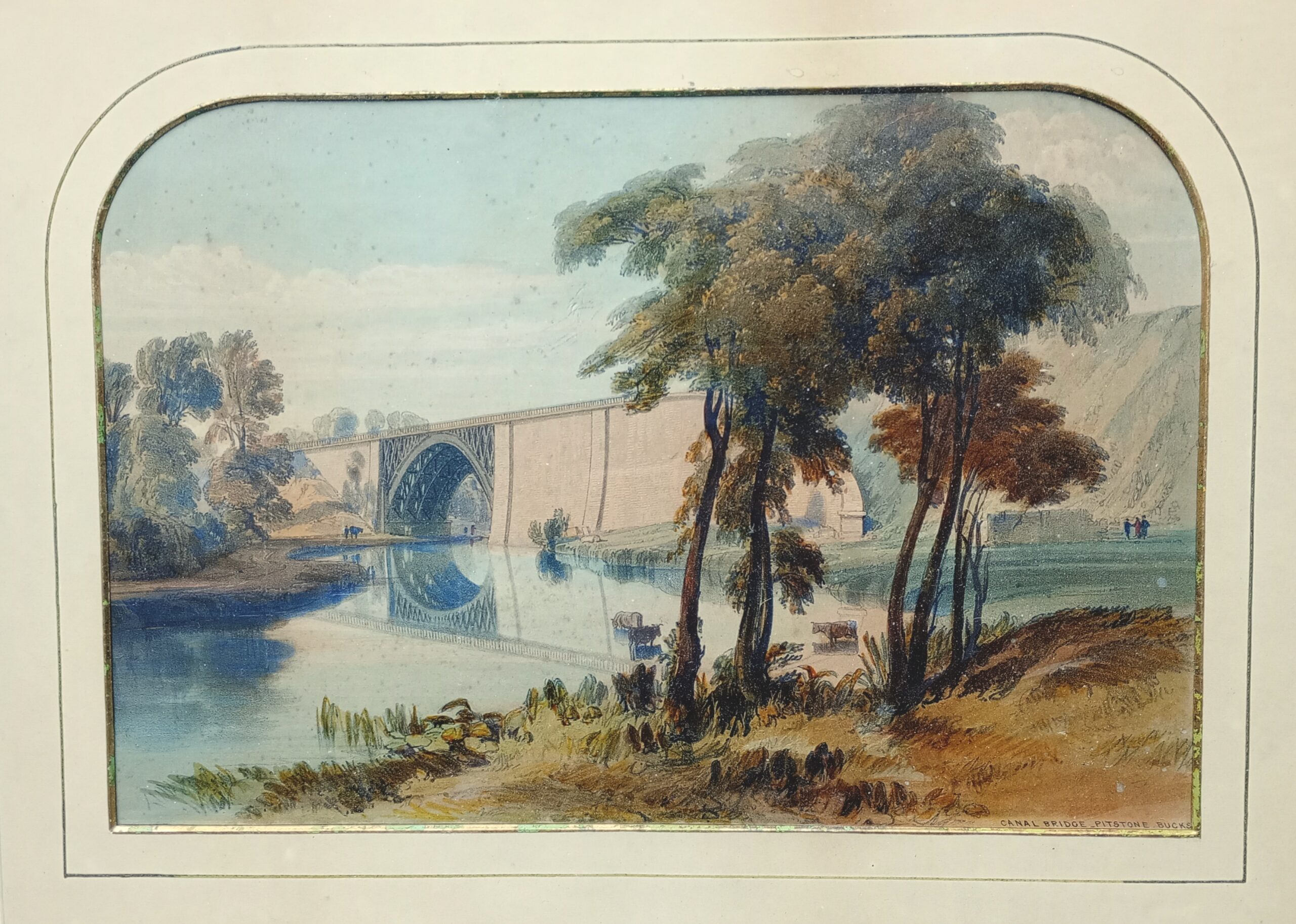 Bourne’s works are primarily lithographs (often hand-coloured, like this example), based on his on-site drawings, rather than traditional oil paintings. This fairly well-known piece is titled ‘Canal Bridge, Pitstone’ dated around October 1837 and published in 1839 as Plate XX in his London and Birmingham Railway series. It depicts a bridge over the canal at Pitstone in the Buckinghamshire/Beds border area, during the railway’s construction.