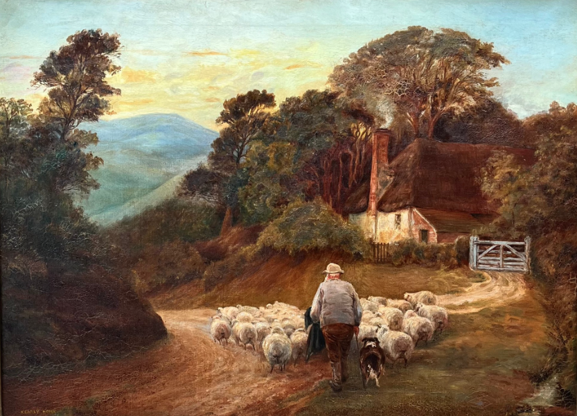 My Great Grandad’s painting of a shepherd and his flock in the sunlight, with a well balanced composition … wish I knew a bit more about it!