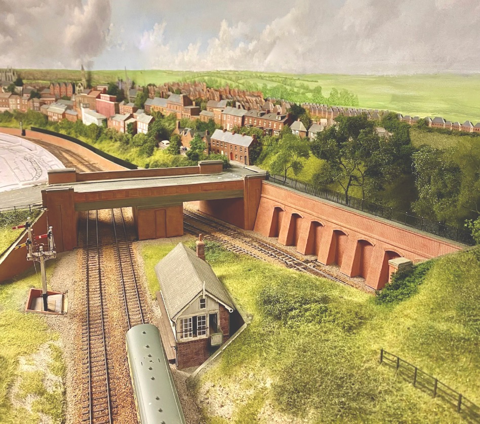 The Scarborough line junction is nearing completion at ‘York in the 50s’ and here’s a view of it looking back towards the town. There are still some details to add, but we’re getting there. Lots of time put in here by Giles and Neil. Giles Baxter.