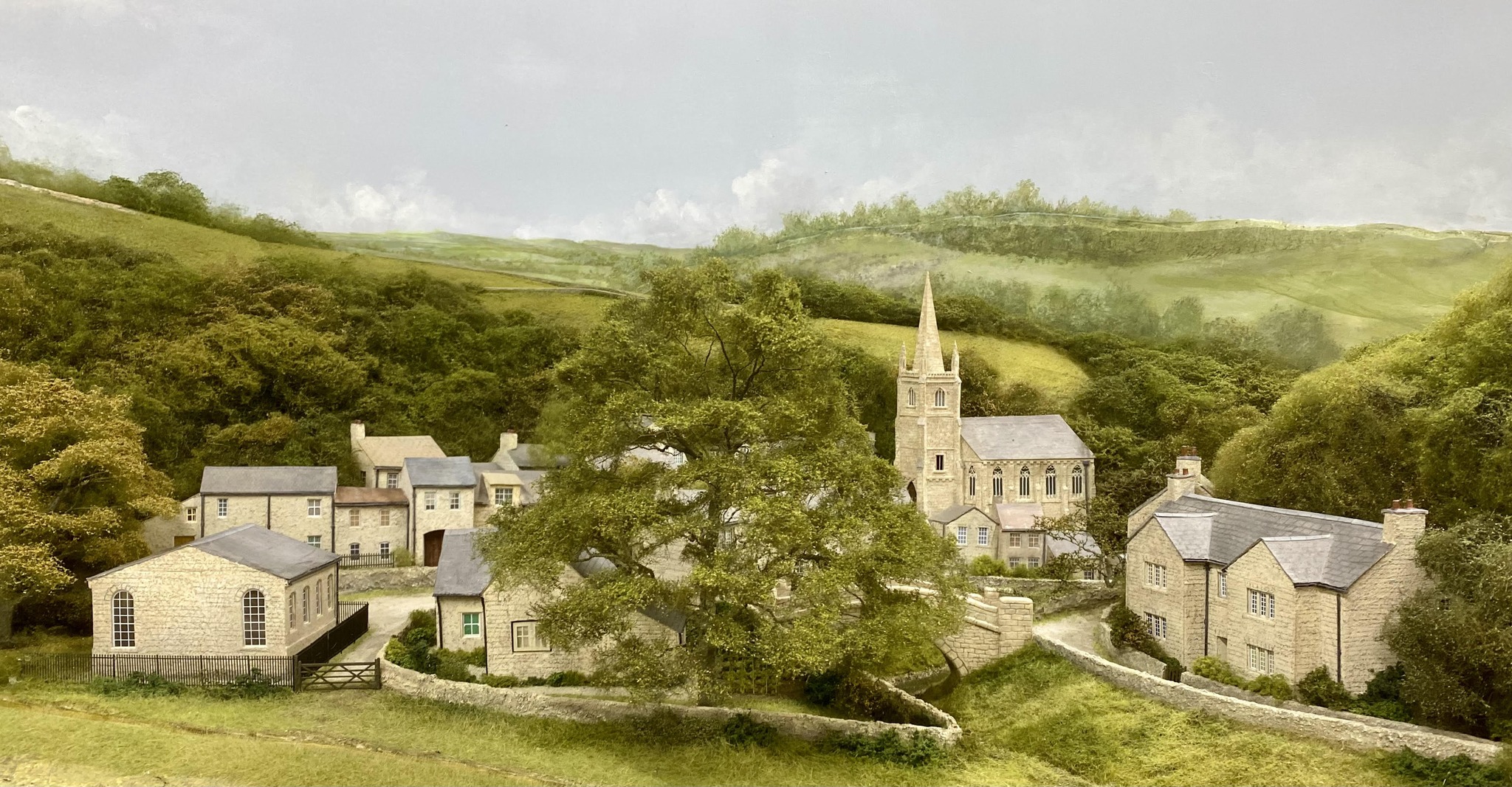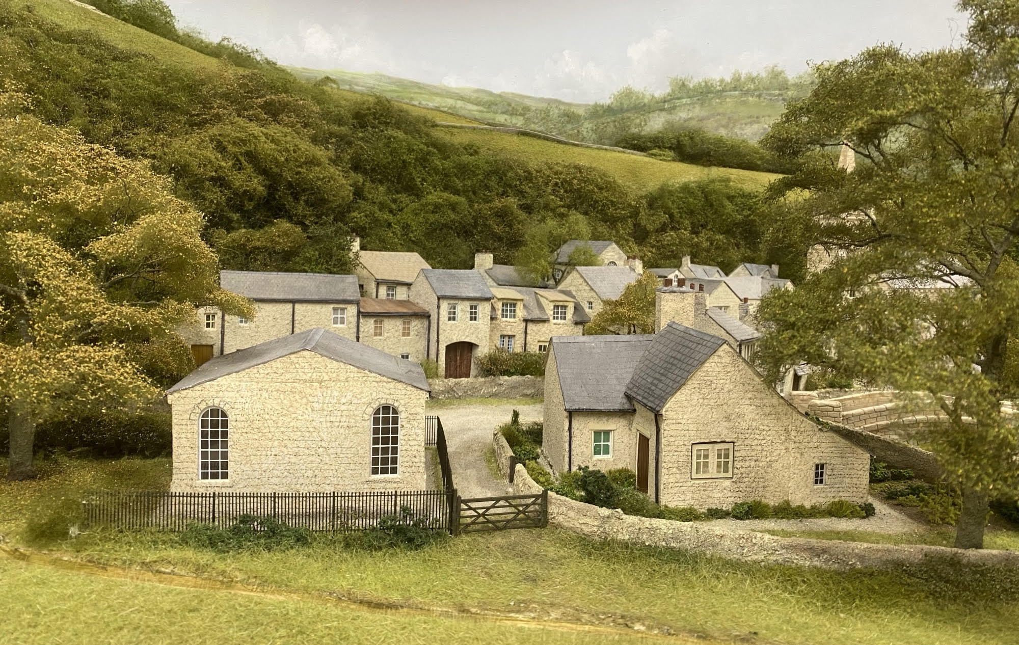 Detail of our Huttons Ambo backscene, with the houses already in progressive scale reduction. Giles Baxter.