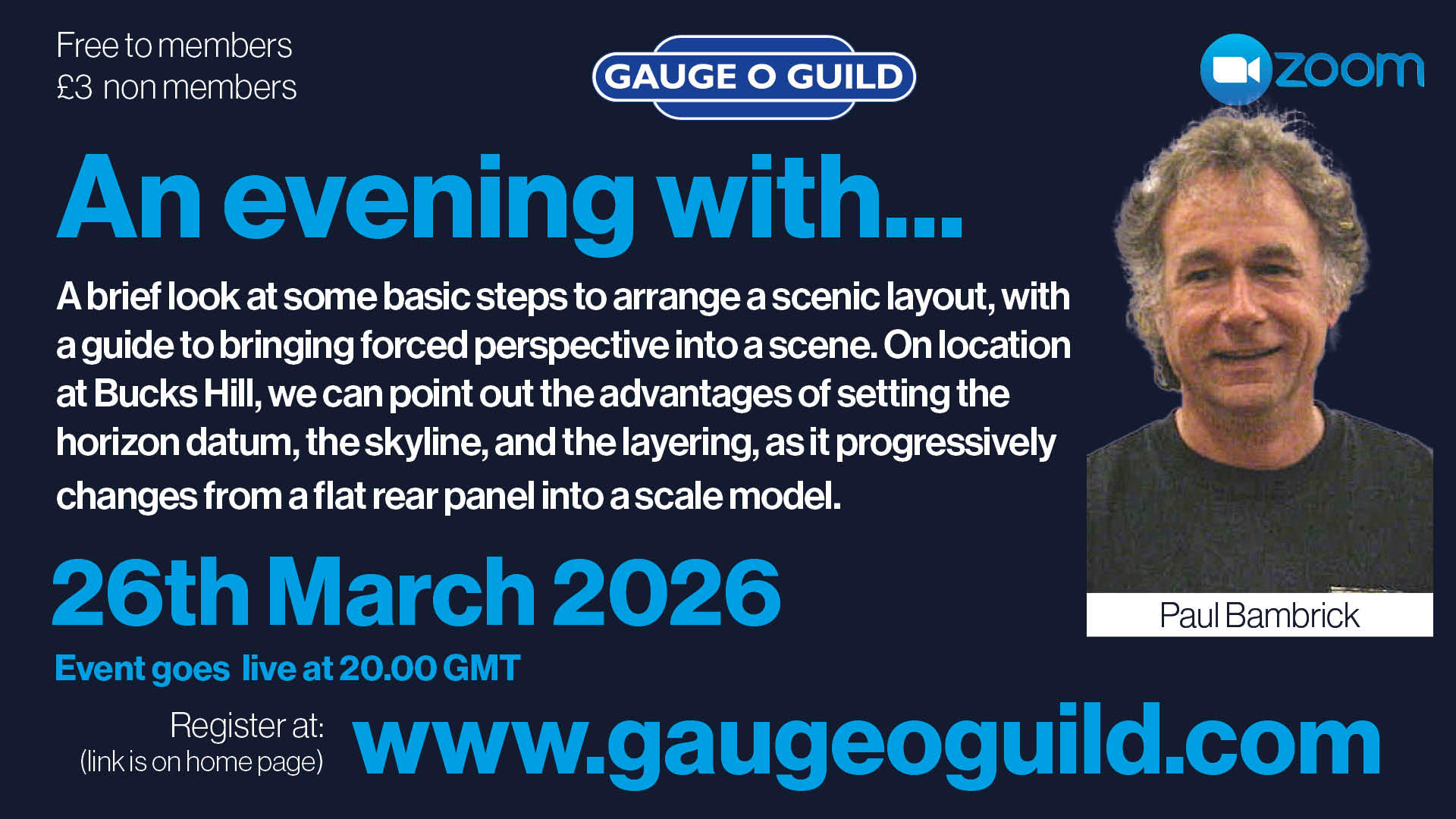 Andy Sparkes is planning to include a virtual look at backscenes and forced perspective for a Gauge O Guild podcast in their ‘Evening with’ series. James Aitken is going to help the set up an internet connection at Bucks Hill so we have some examples to refer to.