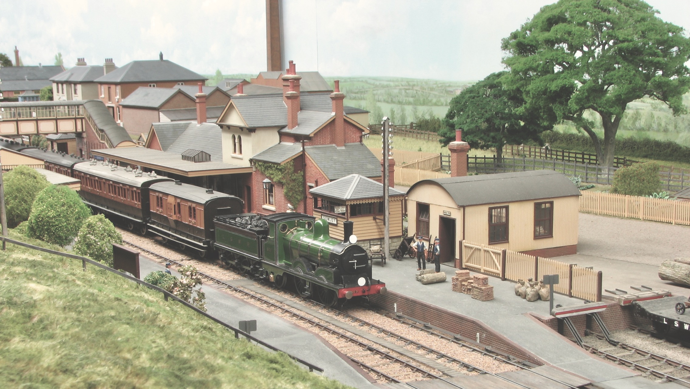 Alongside the station throat pointwork, a small single road locomotive shed is sited for servicing, and another small fan of sidings out in the opposite direction to provide van access to the red brick goods shed. A G.W.R. signal box is placed opposite this and it is quite easy to shunt both yards prototypically, separating and sorting the wagons in between the passenger timings. Photo by Chris Nevard/Model Rail Magazine