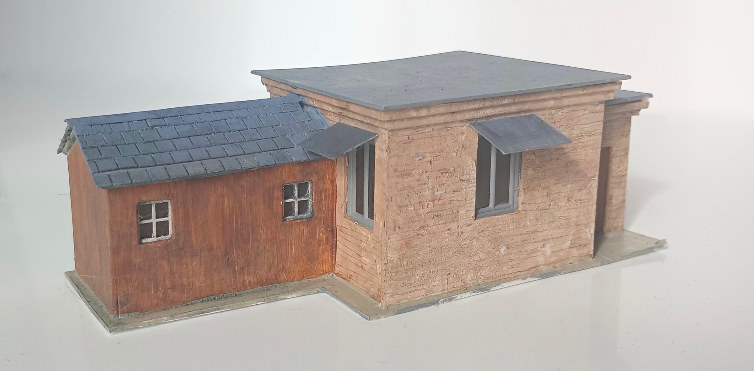 I am working on a few of the very basic buildings for the layout and this, believe it or not, is the signal box!