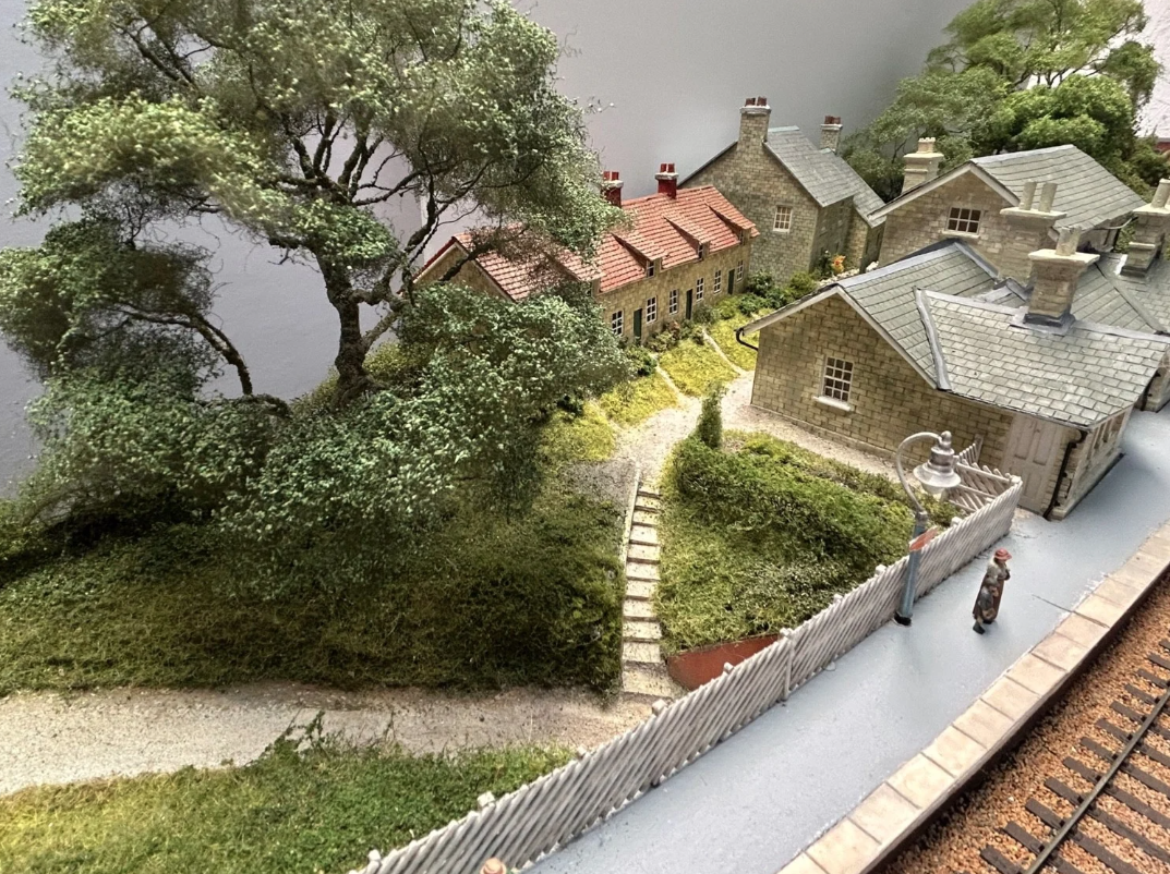 The 3D backscene at Rosedale has been detailed now with walls, gates, trees, hedges and so on, and while there’s always some extra features that could be added such as figures, vehicles etc this is basically how it’s going to look. Keith Newton.